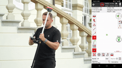 Również w przypadku gdy współrzędne punktów są pozyskiwane z wykorzystaniem wewnętrznego lasera, nie jest wymagane pionowanie tyczki, gdyż wyniki zostaną odpowiednio skorygowane.