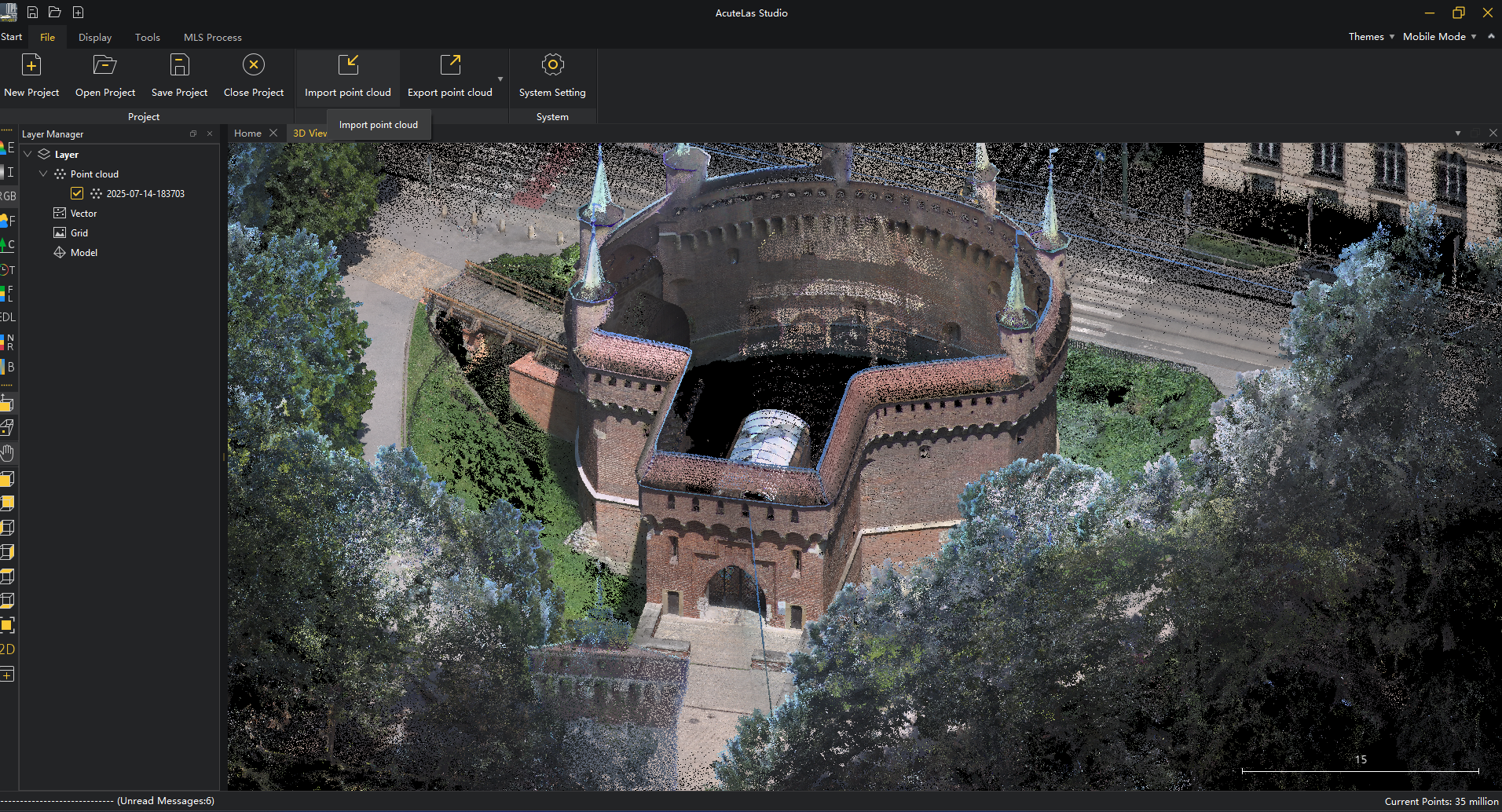 AcuteLas Studio to kompleksowe oprogramowanie do przetwarzania danych LiDAR zarówno z naziemnych, jak i lotniczych skanerów oraz skanerów mobilnych, dedykowane głównie urządzeniom serii AcuteLas i kompatybilnym systemom 3D laserowym.